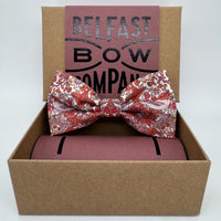 Your Bow Tie is made from a Liberty of London fabric which we chose for its iconic William Morris print incorporating birds & flowers. We loved the earthy 'orangey' red on the contrasting off-white background, along with the tonal dusky pink of the birds.