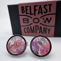 Your Cufflinks are made from a Liberty of London fabric which we loved for its romantic floral design. We chose the rhodium plated cufflink setting for its weighty feel and sturdy luxurious look.