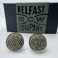 Tweed Cufflinks in Olive Green Herringbone
