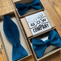 This is your quintessential Dark Teal Velvet Bow Tie. It is made from a luxurious teal cotton velvet that we chose for its classic colour & matte finish. It will serve you time & time again for all your most special dress-up days!